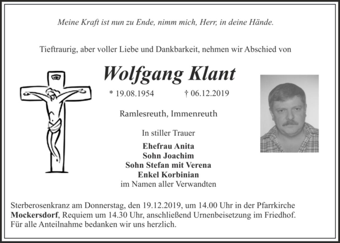 tag, den 19.12.2019, um 14.00 Uhr in der Pfarrkirche Mockersdorf, Requiem