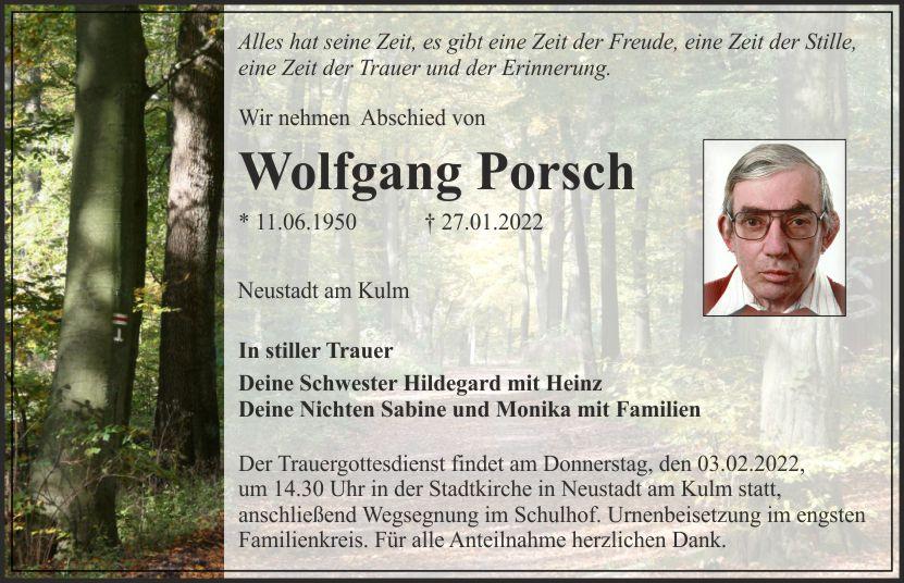 um 14.30 Uhr in der Stadtkirche in Neustadt am Kulm statt, anschließend Wegsegnung im Schulhof. Urnenbeisetzung im engsten Familienkreis. Für alle Anteilnahme herzlichen Dank.