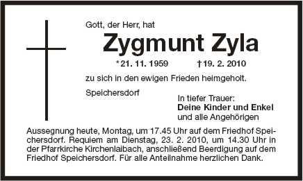 Requiem am Dienstag, 23.2.2010 um 14.30 Uhr in der kath. Pfarrkirche Kirchenlaibach, anschließend Beerdigung auf dem Friedhof Speichersdorf.